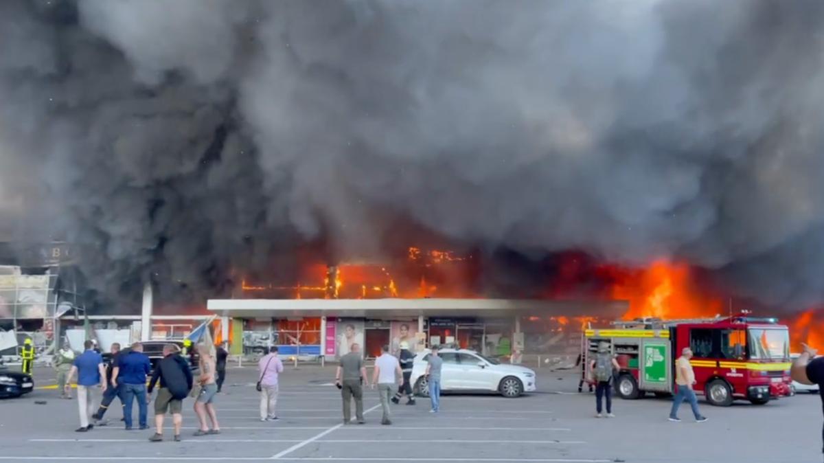 Президент Украины Владимир Зеленский опубликовал видео из Кременчуга. Он первым сообщил, что ракеты попали в торговый центр «Амстор», там начался сильный пожар. По данным главы государства, в момент удара в здании могли находиться более тысячи гражданских. «Количество жертв невозможно даже вообразить», — написал он.