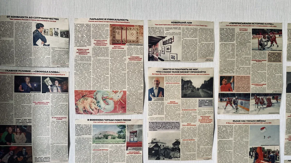 Сотрудники «Вечерних ведомостей» — в одежде с ироничными надписями «Центр мерзотной либероты» и «Город бесов» — колоритными эпитетами телеведущего Владимира Соловьева в адрес Екатеринбурга.