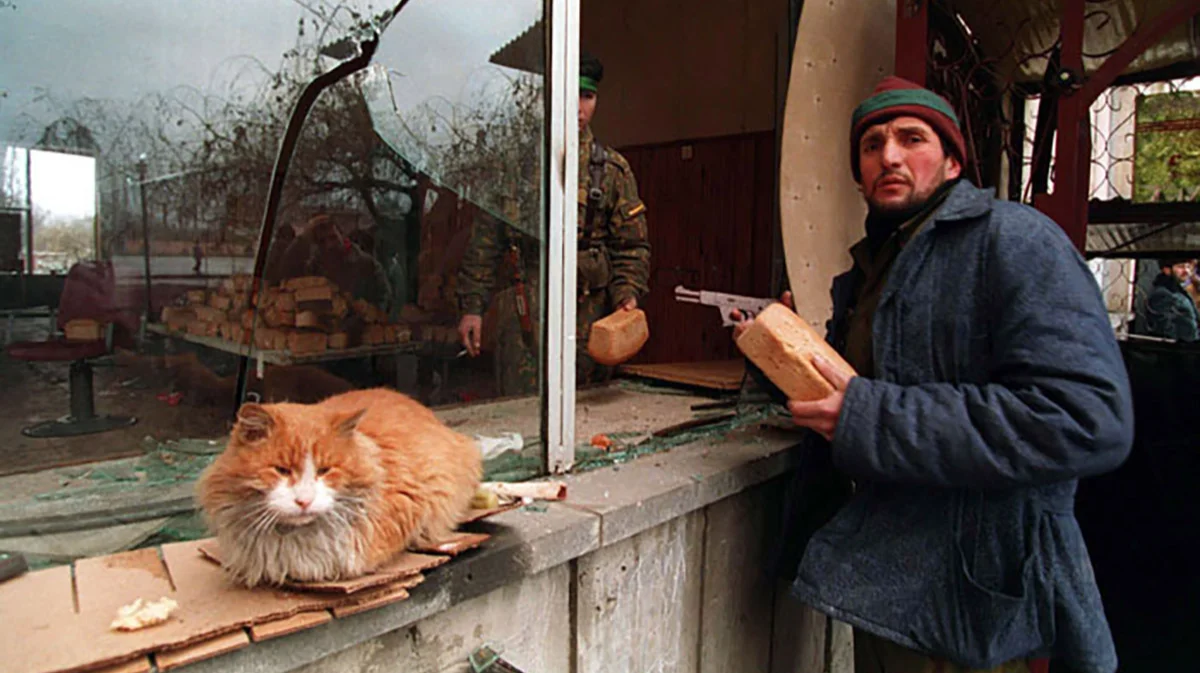Чеченец покупает буханку хлеба в Грозном, 1 января 1995 года. Фото: Михаил Евстафьев / Wikimedia