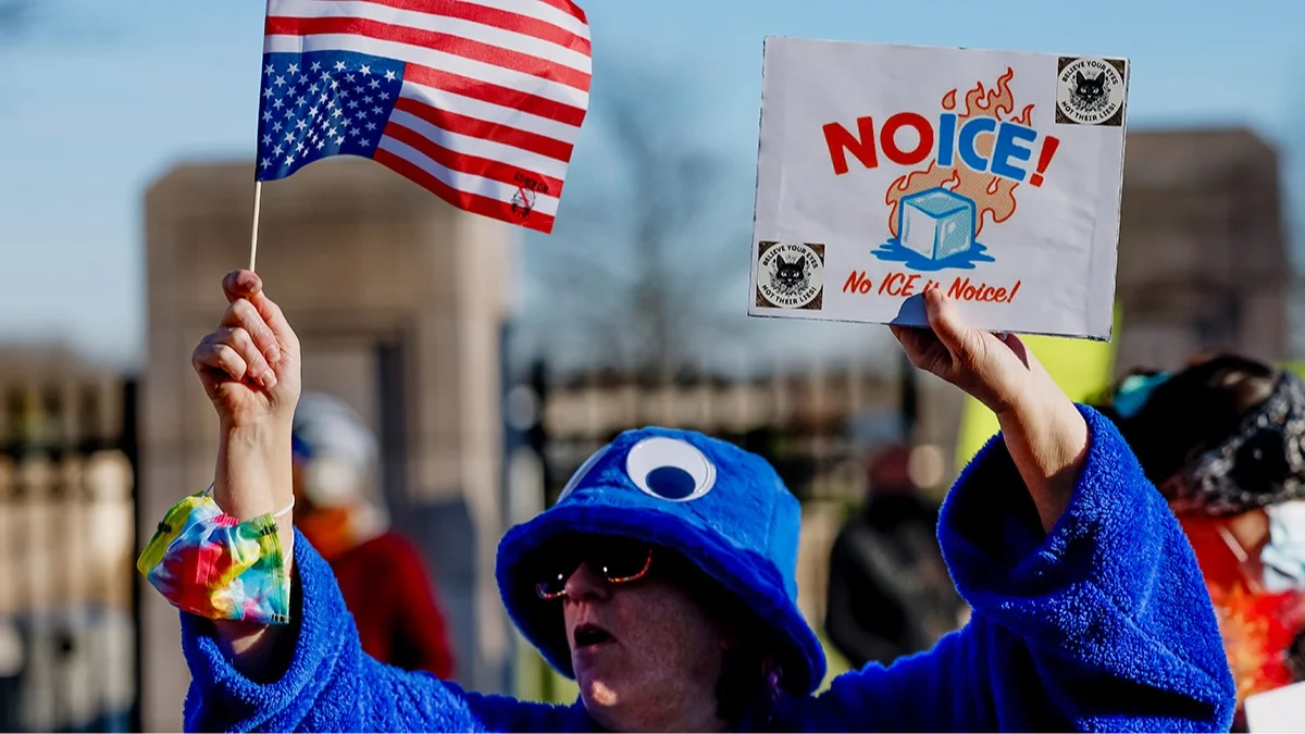 Демонстрант во время акции «Остановим ледяной террор» в Атланте, штат Джорджия, США, 20 января 2026 года. Фото: Erik S. Lesser / EPA