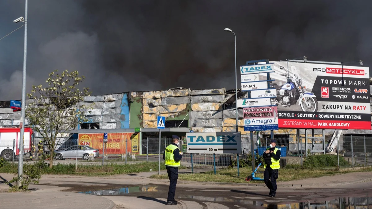 Полицейские у сгоревшего после поджога торгового центра в Варшаве, Польша, 12 мая 2024 года. Фото: SOPA Images Limited / Alamy Live News / Vida Press