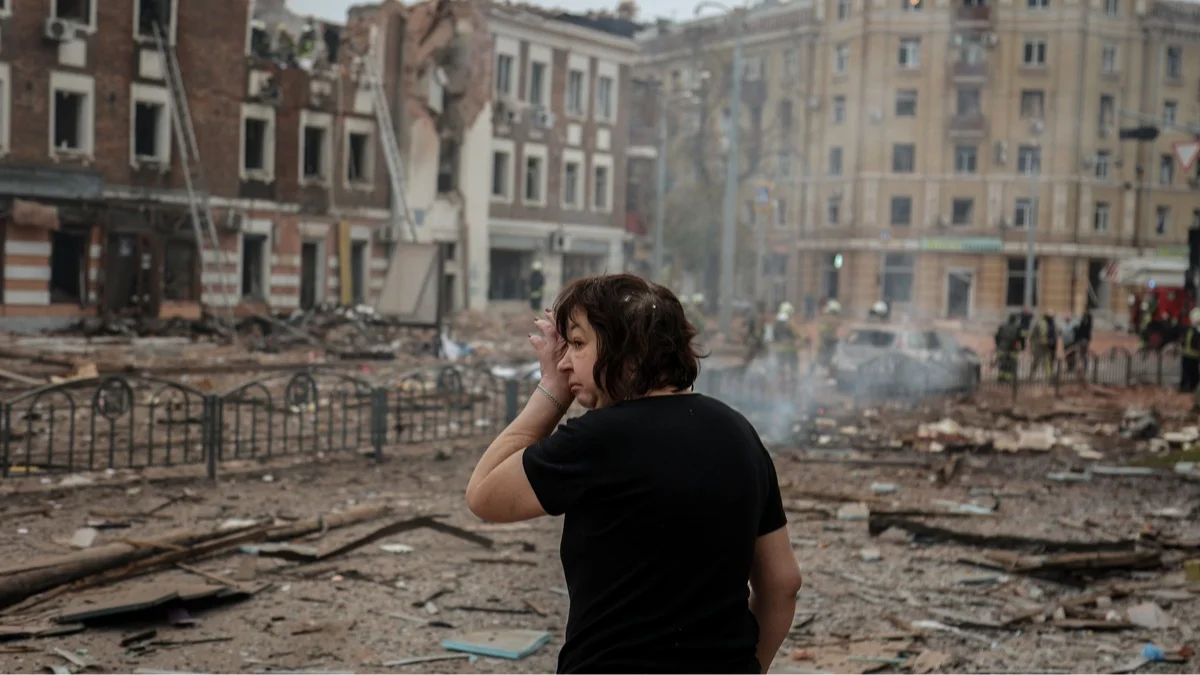 Жительница Харькова после ракетного удара по городу, 6 октября 2023 года. Фото: Yakiv Lyashenko / EPA