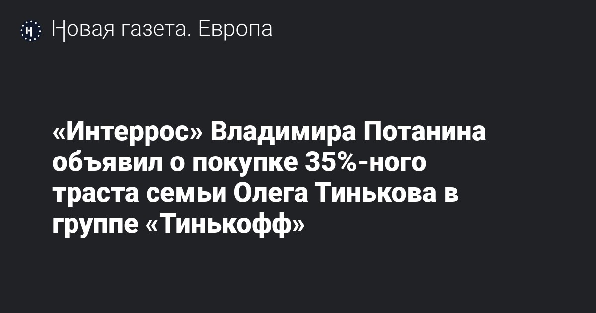 «Интеррос» Владимира Потанина объявил о покупке 35%-ного траста семьи Олега Тинькова в группе «Тинькофф»