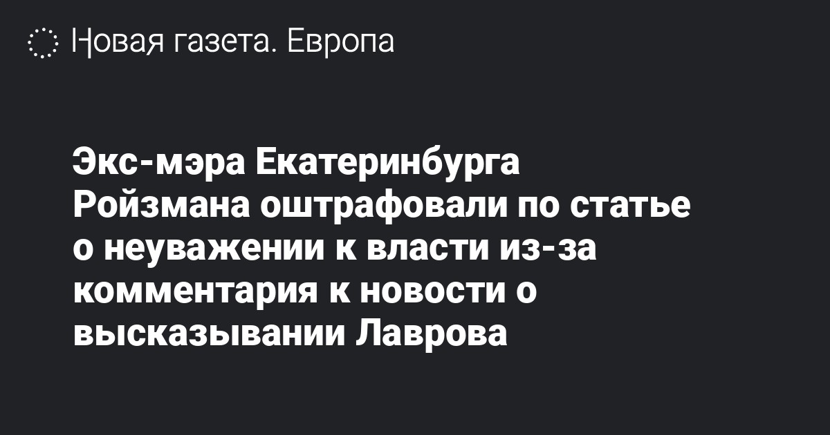 Поводом для протокола стала сторис в инстаграме Ройзмана с его же твитом, уточняла юрист Юлия Федотова. Там экс-мэр Екатеринбурга прокомментировал новость РИА Новости о высказывании главы МИД РФ Сергея Лаврова, которая звучала так: «Операция на Украине призвана покончить с курсом США на доминирование в мире, заявил Лавров». Скриншот твита был с подписью «Евгений Ройзман vs. наглых врунов».