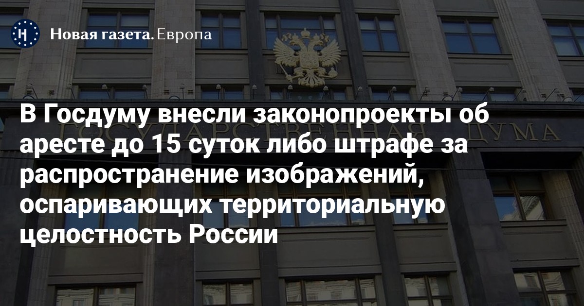 В первом проекте «картографические документы и изображения, оспаривающие территориальную целость Российской Федерации», причисляют к экстремистским материалам. Согласно второму документу, распространение подобных карт или изображений будет грозить арестом до 15 суток или штрафом до 1 миллиона рублей.
