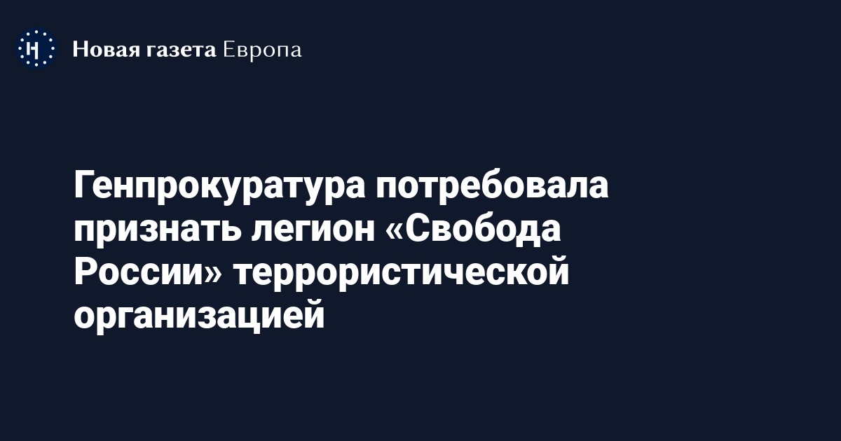 Генпрокуратура РФ потребовала признать легион «Свобода России» террористической организацией и запретить его деятельность на территории России. Об этом сообщается в телеграм-канале ведомства.