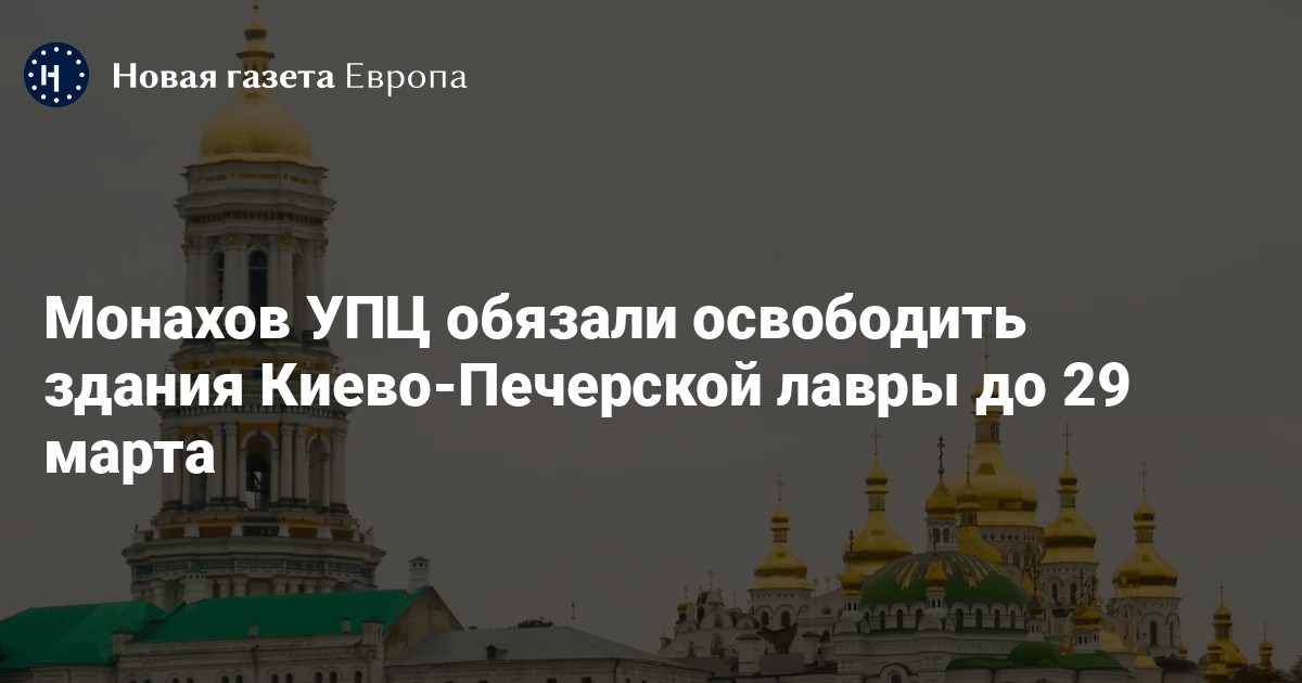 Национальный заповедник «Киево-Печерская Лавра» обязал монахов канонической Украинской православной церкви (УПЦ) Московского патриархата покинуть территорию до 29 марта. Об этом сообщается на сайте монастыря.