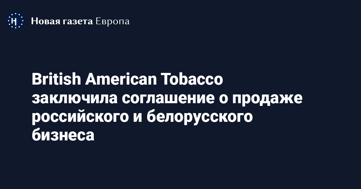 Табачный концерн British American Tobacco (BAT) официально заключил соглашение о продаже своих российских и белорусских активов местному менеджменту. Об этом говорится в заявлении компании.