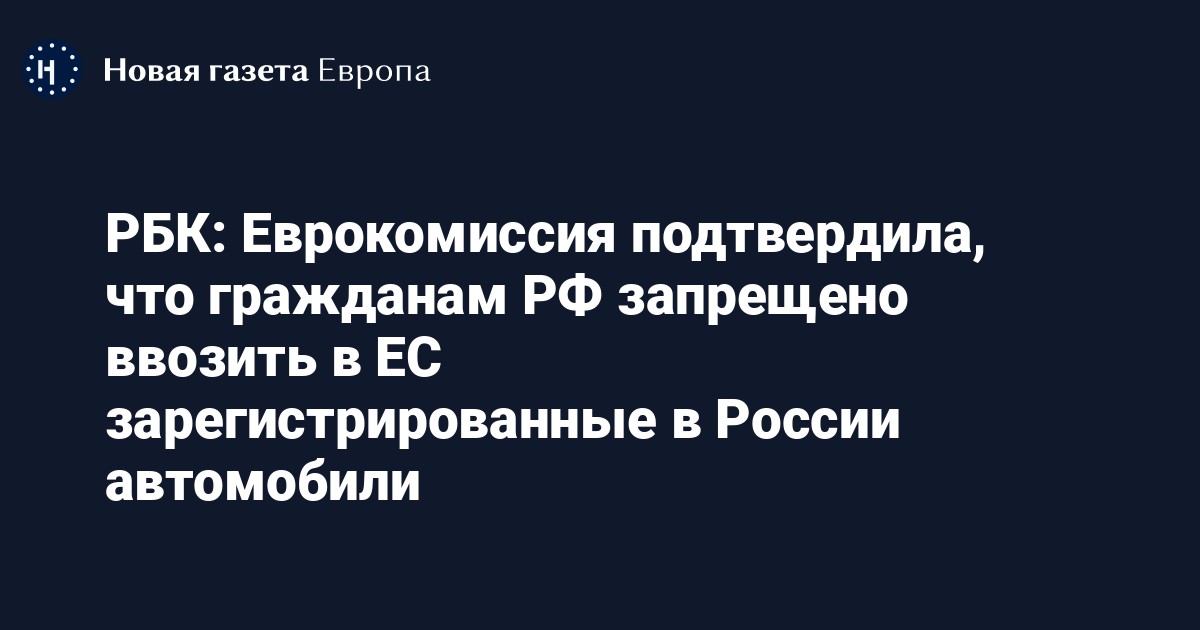 Как подтвердила Еврокомиссия, согласно санкционному законодательству в отношении России, въезд в страны Евросоюза на зарегистрированных в РФ автомобилях будет расцениваться как запрещенный импорт, сообщает РБК.