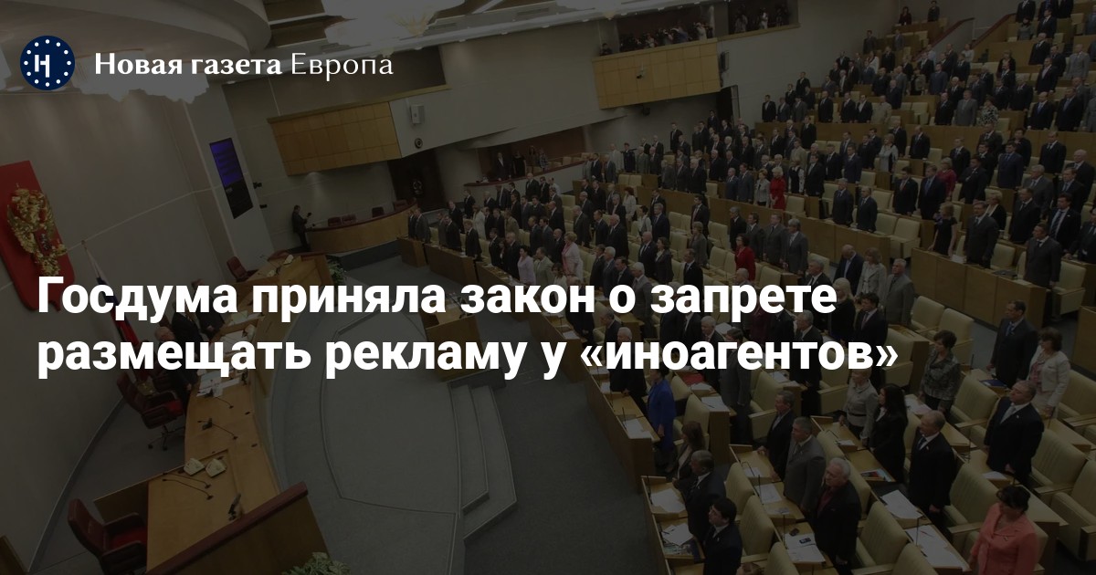 Депутаты Госдумы в третьем и финальном чтении приняли закон о запрете размещать рекламу на площадках «иноагентов». Об этом сообщает пресс-служба нижней палаты парламента.