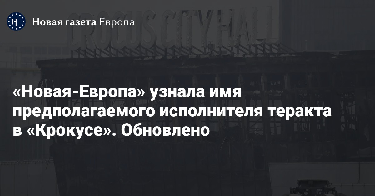 Источник «Новой газеты Европа» сообщил имя предполагаемого исполнителя теракта в концертном зале «Крокус Сити Холл» — именно о его убийстве ранее писала Русская служба «Би-би-си».