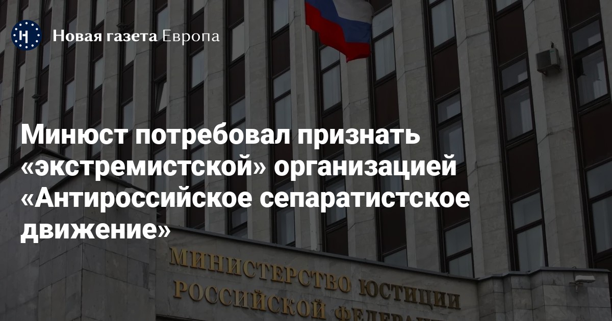 Минюст потребовал признать «экстремистской организацией» «Антироссийское сепаратистское движение». Об этом сообщается на сайте министерства.