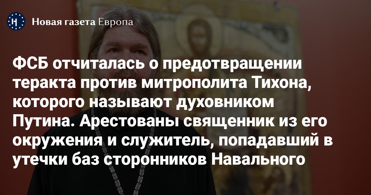 «Задержанные признались, что были завербованы в середине 2024 года для устранения митрополита Тихона. В декабре через тайник они получили СВУ и планировали совершить преступление во время визита митрополита в Москву»,— говорится в сообщении ФСБ.