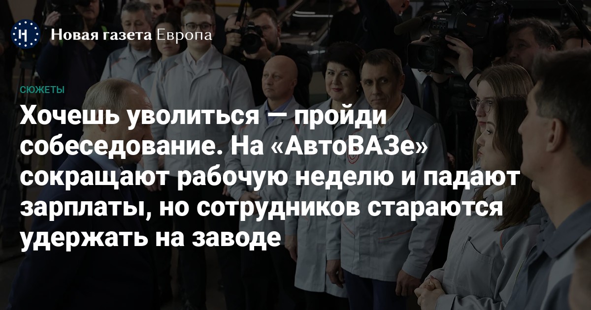 На «АвтоВАЗе» падают продажи и сокращаются доходы сотрудников. Руководство завода называет информацию о массовых увольнениях рабочих «обычной текучкой». «Новая газета Европа» поговорила с рабочими из Тольятти: они говорят, что атмосфера на предприятии тяжелая, а уволиться стало труднее, чем устроиться.