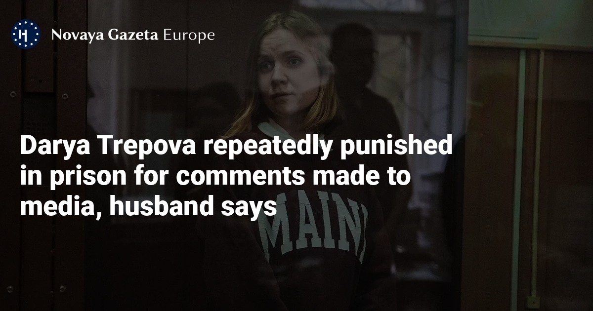 Darya Trepova, the Russian woman who was sentenced to 27 years in prison last year for the murder of a prominent pro-war blogger, has been repeatedly placed in a punishment cell over comments she made to Russian state media, her husband Dmitry Rylov claimed on Monday.