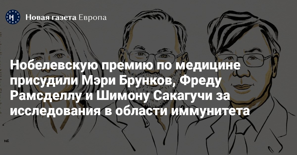 Нобелевскую премию в области физиологии и медицины вручили Мэри Э. Брунков, Фреду Рамсделлу и Шимону Сакагучи. Об этом говорится в соцсетях награды.
