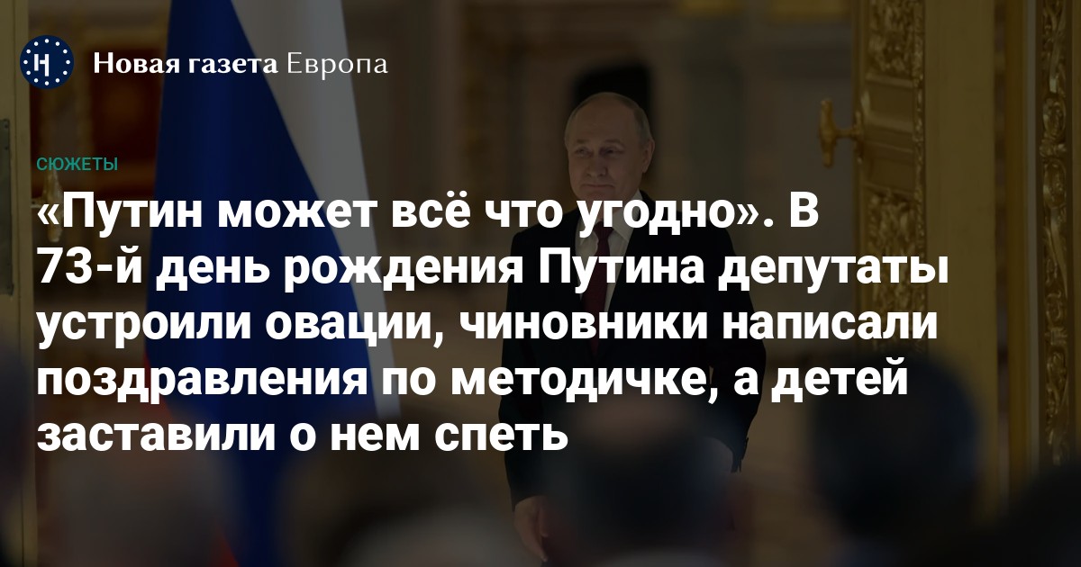 В 73-й день рождения Путина депутаты устроили овации, чиновники написали поздравления по методичке, а детей заставили о нем спеть