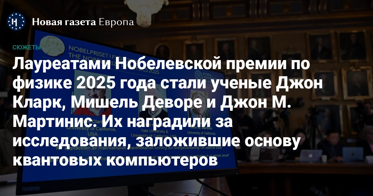Нобелевский комитет 8 октября 2025 года вручил премию по физике. Ее лауреатами стали исследователи Калифорнийского университета в Беркли и Санта-Барбаре, а также Йельского университета Джон Кларк, Мишель Х. Деворе и Джон М. Мартинис. Ученых отметили за работу в области квантово-механического туннелирования, которая заложила основу для разработки современных квантовых технологий. «Нобелевская премия по физике этого года открыла возможности для разработки следующего поколения квантовых технологий, включая квантовую криптографию, квантовые компьютеры и квантовые датчики», — говорится в заявлении Нобелевского комитета.