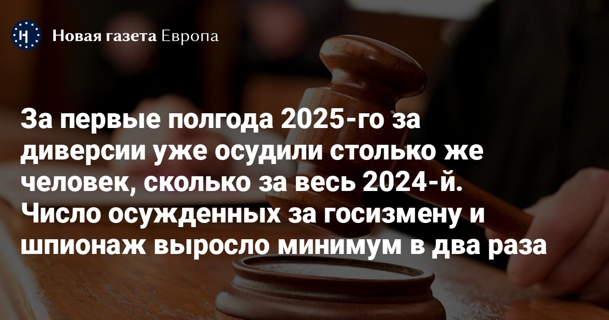 За первые шесть месяцев 2025 года в РФ 48 человек получили сроки по статье о диверсии. Это столько же, сколько за весь 2024 год. Об этом сообщают «Важные истории» со ссылкой на данные Судебного департамента при Верховном суде.