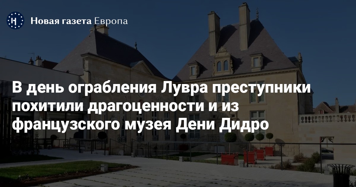 В ночь на 20 октября, спустя несколько часов после ограбления Лувра в Париже, преступники похитили драгоценности и из музея «Дом просвещения Дени Дидро» в городе Лангр. Об этом пишет Le Figaro.