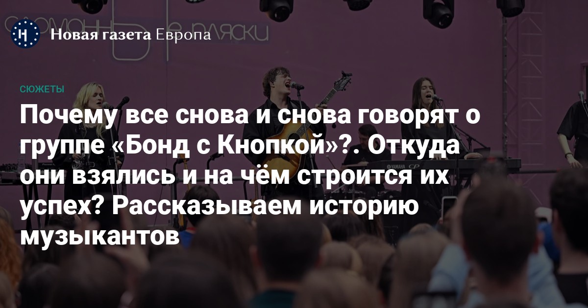 На претензии отвечать довольно скучно: ну, сколько уже было этих разборок бумеров и зумеров, душнарей и экспериментаторов, раздолбаев и ханжей. Ну, да, одна и та же песня — ну, Илья Золотухин сам в этом честно признается. Ну, да, странная поэзия — но придраться можно к кому угодно. Ну, да, тиски цензуры — а вы ждете самосожжение на сцене? Ну, да, ну, да. Но давайте лучше разберемся, откуда вообще взялись «Бонд с Кнопкой», на чём основан их успех, из чего состоит их музыка?