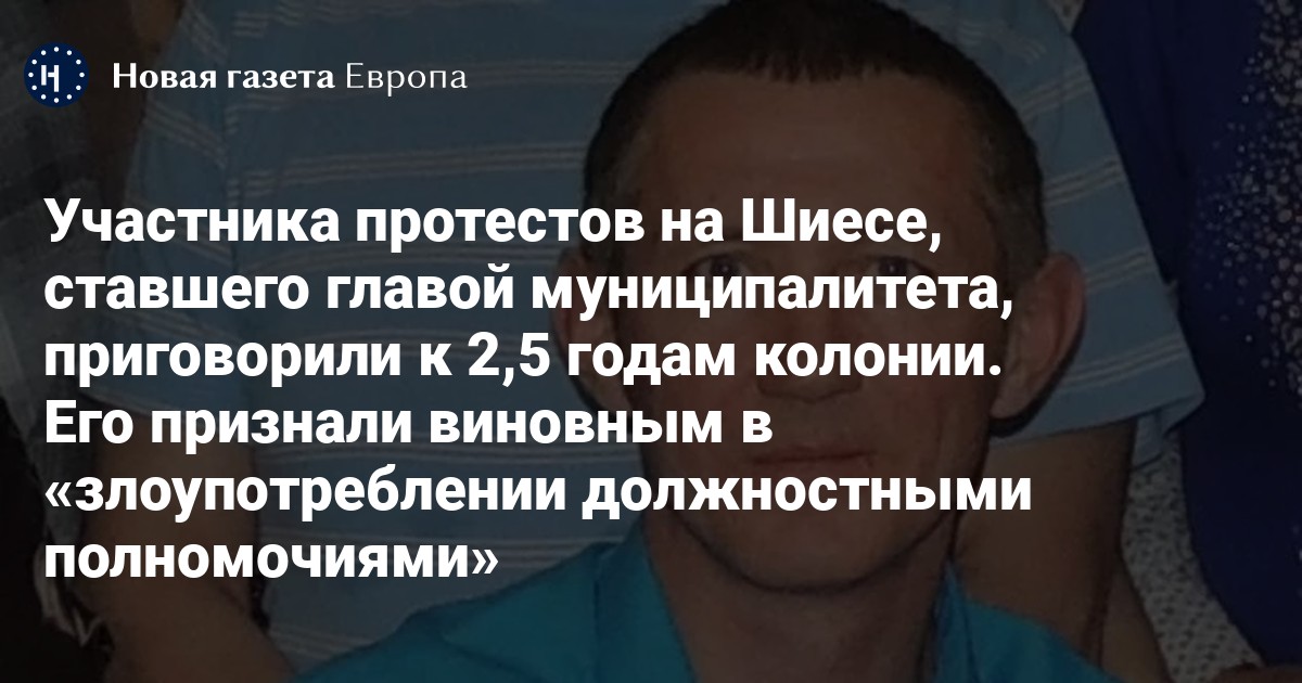 Вилегодский районный суд Архангельской области приговорил главу муниципального образования Урдомское и участника экологического протеста на Шиесе Сергея Якимова к двум с половиной годам колонии общего режима по обвинению в превышении должностных полномочий, повлекшем тяжкие последствия (ч. 3 ст. 285 УК). Об этом сообщает пресс-служба суда.