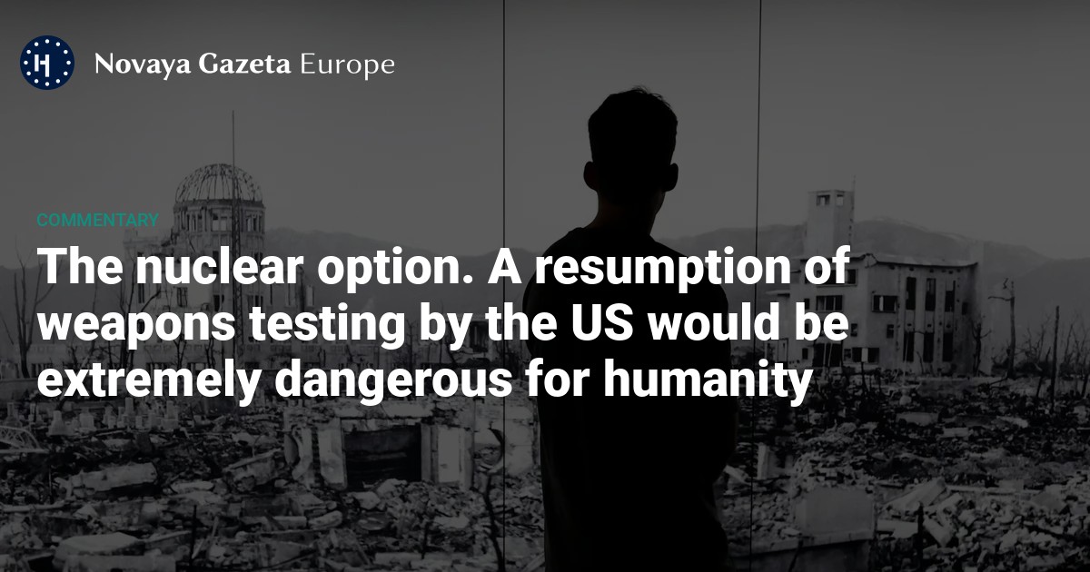 US President Donald Trump has instructed the Pentagon to resume nuclear weapons testing immediately, “on an equal basis” with other countries’ testing programmes. If Trump is referring to the resumption of explosive nuclear testing, this would be an extremely unfortunate, regrettable step by the United States.