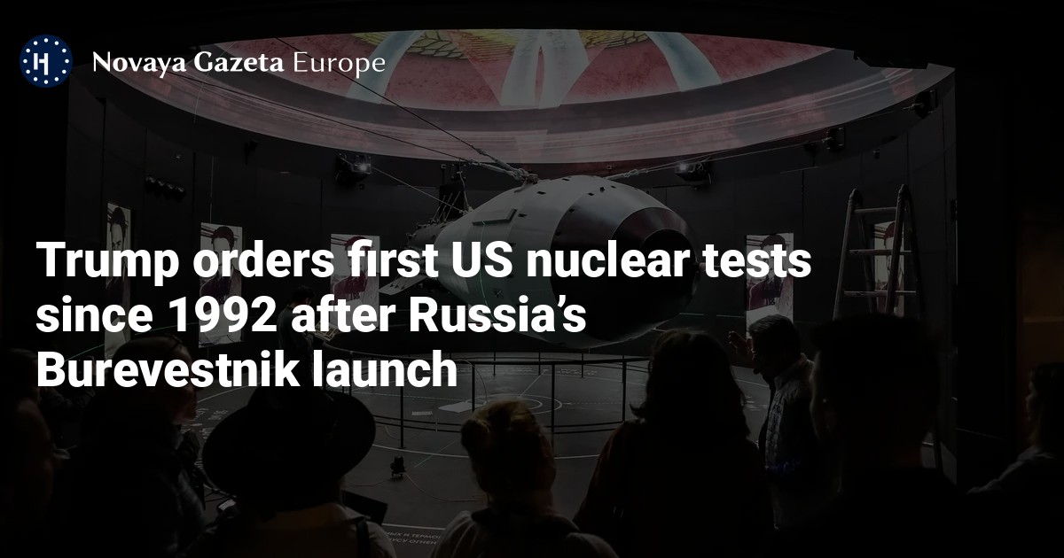 US President Donald Trump on Thursday ordered the US military to conduct the country’s first nuclear weapons tests in over 30 years, just days after the Kremlin announced the successful testing of its new nuclear-armed, nuclear-powered Burevestnik intercontinental missile.