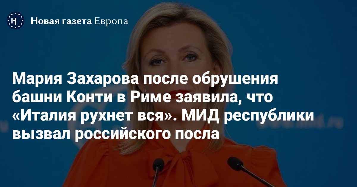 Мария Захарова после обрушения башни Конти в Риме заявила, что «Италия рухнет вся». МИД республики вызвал российского посла