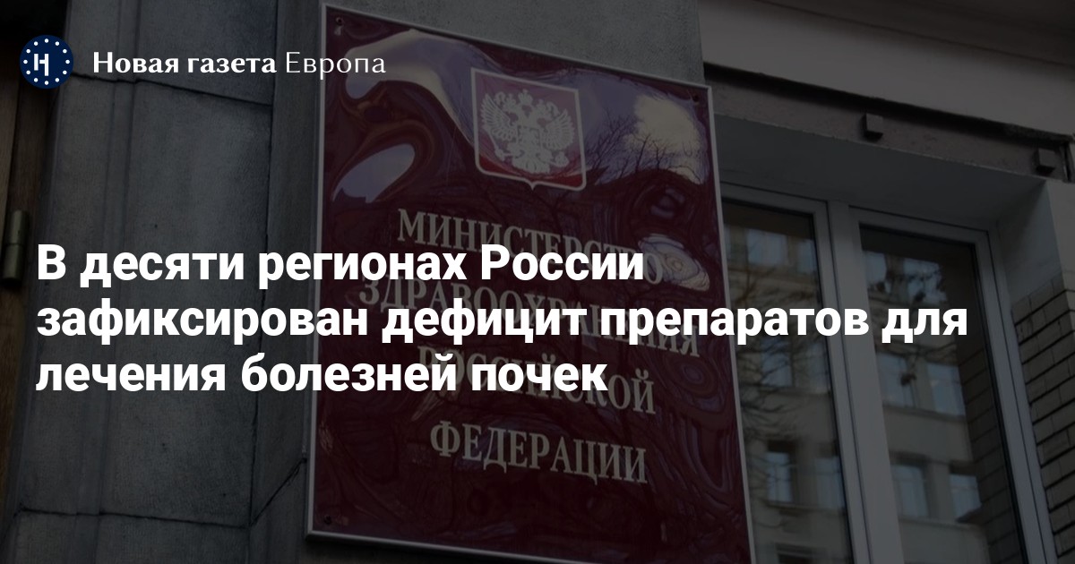 В десяти регионах России зафиксирован дефицит препаратов для лечения болезней почек. Об этом пишут «Известия» со ссылкой на читателей и представителей пациентской организации «Нефро-Лига».