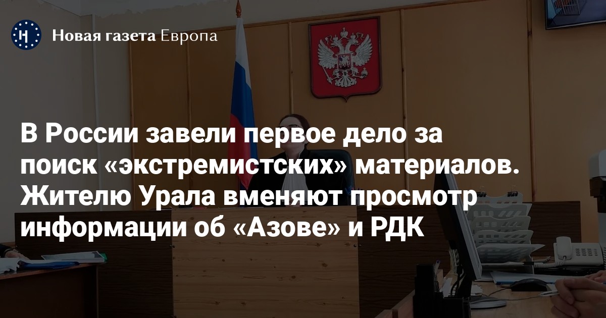 Суд в Каменске-Уральском Свердловской области начал рассматривать административное дело против местного жителя по статье о поиске «заведомо экстремистских материалов» и получении доступа к ним (ст. 13.53 КоАП). Об этом изданию It's My City рассказал его адвокат Сергей Барсуков.