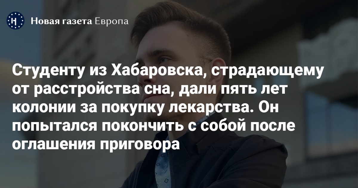 Центральный районный суд Хабаровска приговорил к пяти годам колонии студента Андрея Морозцева по делу о пересылке и покушении на контрабанду наркотиков в крупном размере (ст. 228.1, 229.1 УК) за заказ лекарства от расстройства сна. Об этом изданию «7х7» рассказали его близкие.