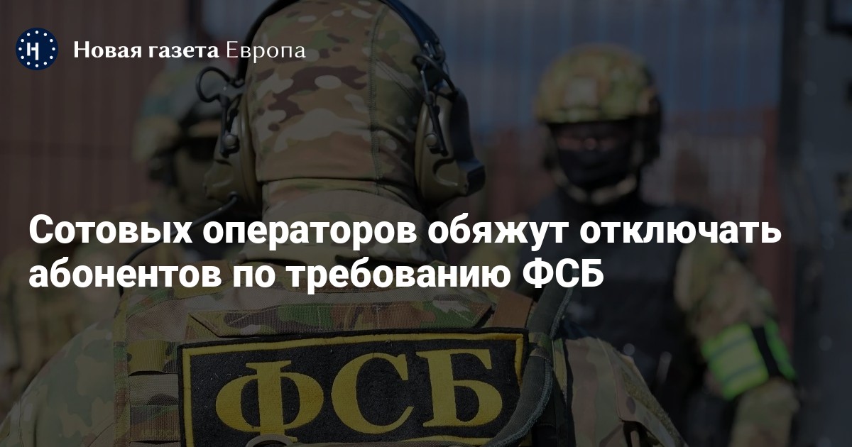 Изменения планируют внести в федеральный закон «О связи». Поправки обяжут операторов связи приостанавливать оказание услуг по запросу ФСБ в случаях, «определенных нормативными актами президента и правительства РФ».