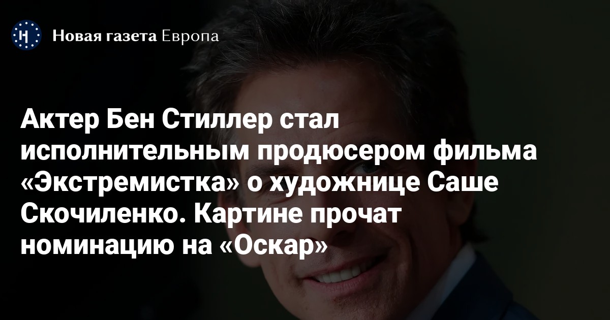 Актер Бен Стиллер («Ночь в музее») и режиссер Джон Лешер («Бердмэн») стали исполнительными продюсерами короткометражного фильма Александра Молочникова «Экстремистка». Об этом пишет Deadline.