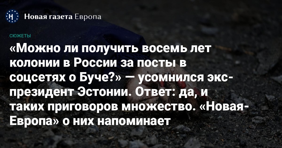 Бывший президент Эстонии Тоомас Хендрик Ильвес усомнился в том, что в России могут посадить в колонию за посты об украинской Буче и о действиях российском армии в этом городе во время оккупации.