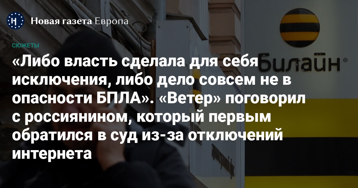 В иске (есть в распоряжении редакции) истцы сообщили, что с 22 октября, несмотря на положительный баланс на телефонных номерах «Билайна», у них был ограничен мобильный интернет. Доступ был лишь на сайты «Авито», ВКонтакте, Озон и Госуслуги. То есть интернет-ресурсы так называемого «белого списка». Ранее Минцифры сообщало, что этими сайтами можно будет пользоваться даже при отключении мобильного интернета.