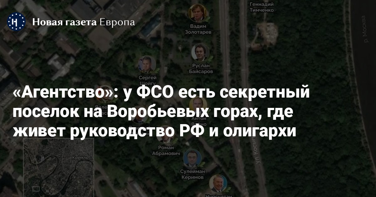В центре Москвы на Воробьевых горах есть секретный поселок ФСО (Федеральной службы охраны), где высокопоставленные российские чиновники, олигархи и бывший президент Казахстана Нурсултан Назарбаев получили дачи. Об этом сообщается в расследовании «Проекта».