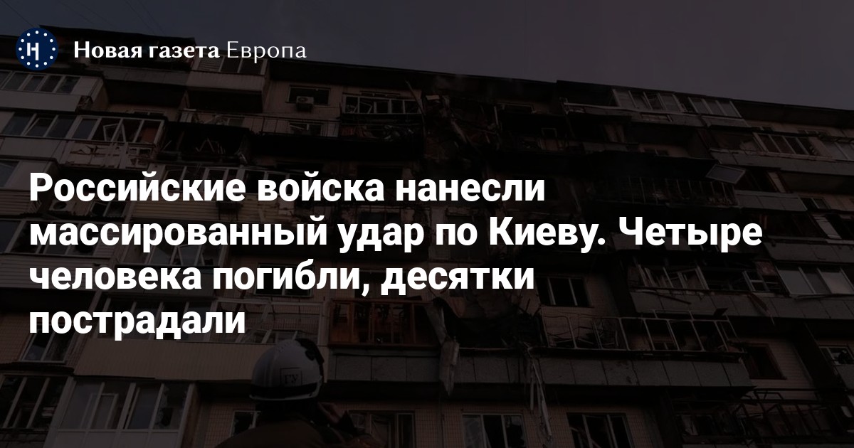 Российские войска ночью атаковали Киев ракетами и беспилотниками, погибли четыре человека, еще десятки ранены, сообщил президент Украины Владимир Зеленский.