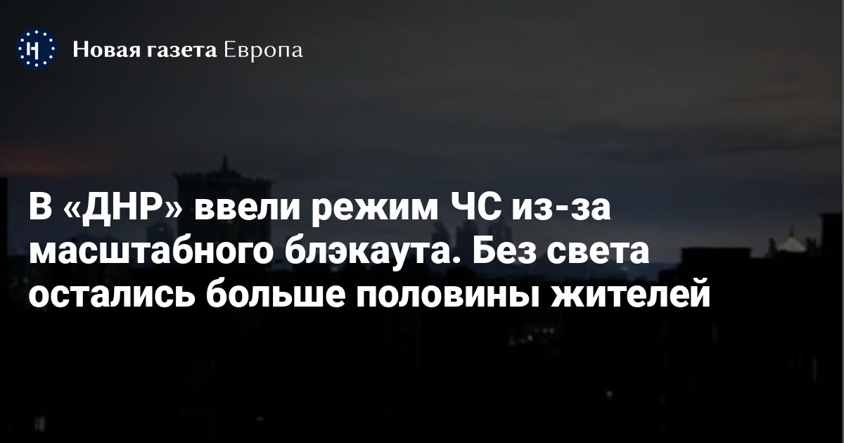 В «ДНР» ввели режим ЧС из-за масштабного блэкаута. Без света остались больше половины жителей