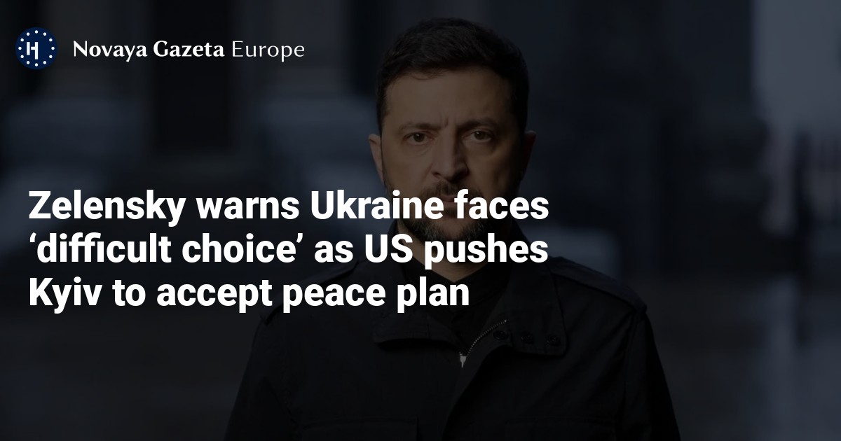 Ukraine faces “a difficult choice” in the coming days, whether to accept the latest US peace plan or face “a very tough winter”, Ukrainian President Volodymyr Zelensky warned in a video address to the nation on Friday, amid reports that the US is putting pressure on Kyiv to accept the deal.