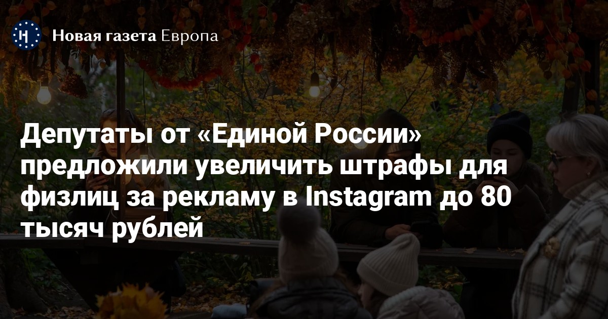 Депутаты от «Единой России» предложили увеличить штрафы для физлиц за рекламу в Instagram до 80 тысяч рублей