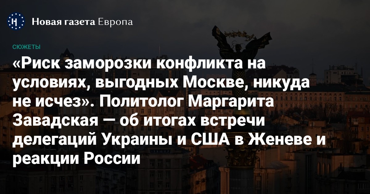 Переговоры украинской и американской делегаций, прошедшие 23 ноября в Женеве, скорректировали исходный жесткий план Трампа из 28 пунктов, выгодных Москве, однако Украину всё равно вынуждают пойти на значительные и несимметричные компромиссы, заявила в разговоре с «Новой-Европа» политолог Маргарита Завадская.