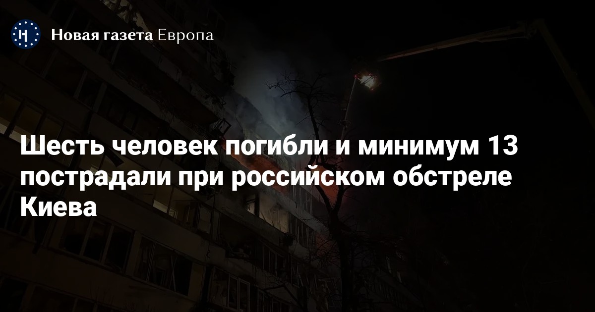 Минимум шесть человек погибли и 13 пострадали в результате российского обстрела Киева. Об этом сообщила Госслужба Украины по чрезвычайным ситуациям (ГСЧС).