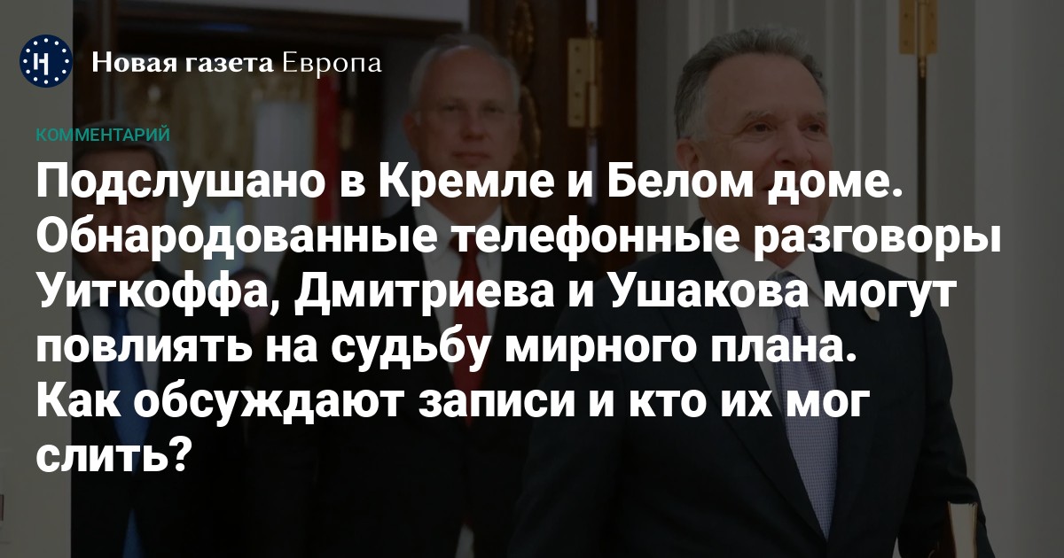 Агентство Bloomberg опубликовало полную расшифровку двух телефонных разговоров между российскими и американскими чиновниками, в которых они обсуждали мирный план по Украине. В первом из них, состоявшемся 14 октября, помощник Путина по международным отношениям Юрий Ушаков говорит с спецпосланником президента США Стивом Уиткоффом, а во втором, прошедшем 20 октября, — со спецпредставителем Кремля Кириллом Дмитриевым.