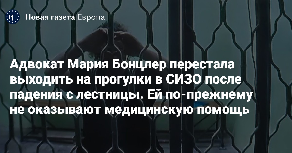 Адвокат Мария Бонцлер перестала выходить на прогулки в СИЗО после падения с лестницы. Ей по-прежнему не оказывают медицинскую помощь