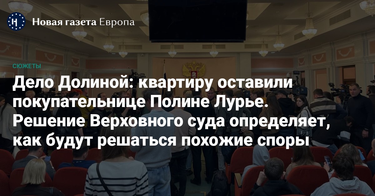 Верховный суд отправил дело о квартире Ларисы Долиной на новое рассмотрение, сообщает корреспондент «Новой газеты Европа» из зала суда. Право собственности на квартиру осталось за покупательницей Полиной Лурье.