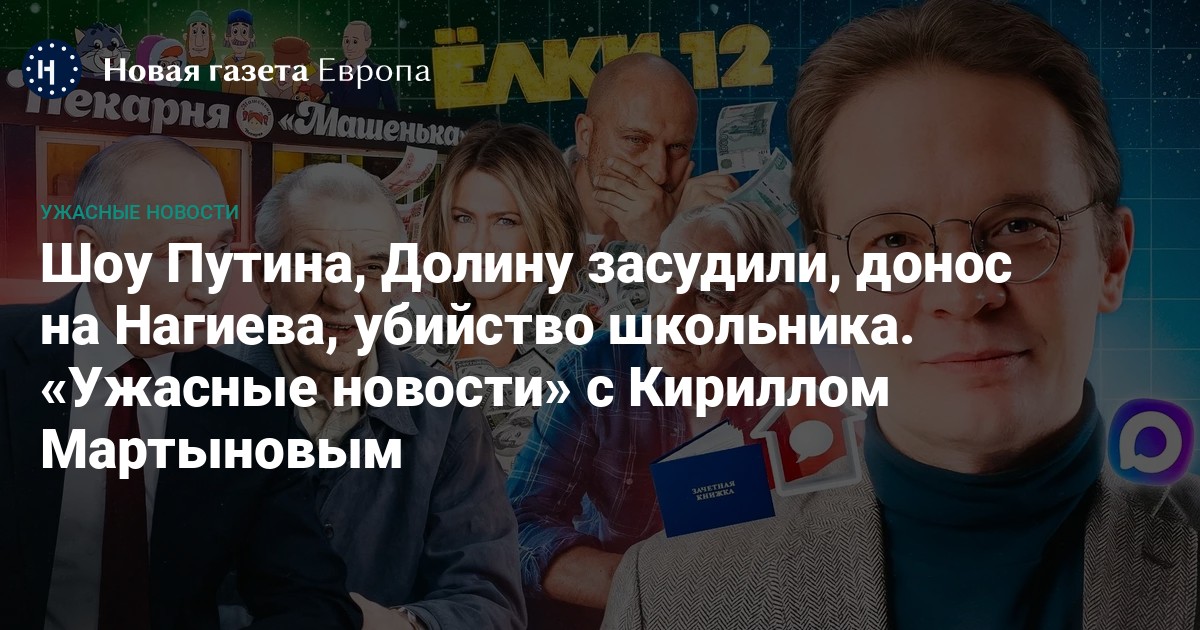Иноагент в футболке с Путиным, донос на Нагиева за усталость от войны, запрет туалетной бумаги с Кремлём и путинские каникулы в Простоквашино. Смотрите главные новости недели с комментариями главреда «Новой газеты Европа» Кириллом Мартыновым.