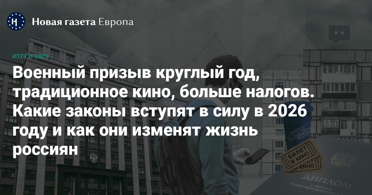 В наступающем году государство будет еще старательнее ограждать своих граждан — от нетрадиционных ценностей в кино, пропаганды наркотиков, иностранных слов и неправильных мессенджеров; вербовать их на войну — призыв станет круглогодичным; контролировать еще больше сфер их жизни — от образования на коммерческой основе до денежных переводов. Рассказываем о главных изменениях.