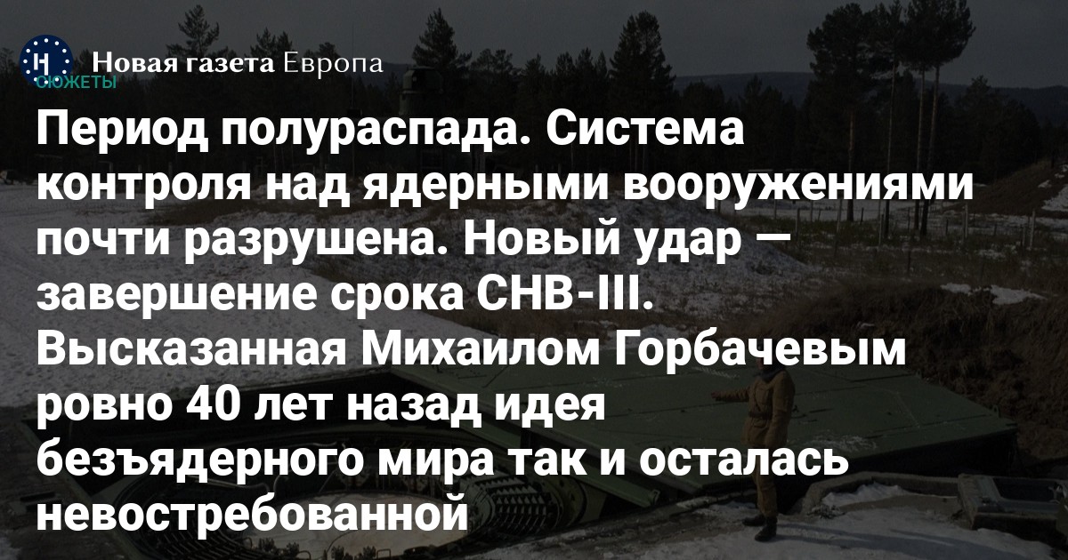 Система контроля над ядерными вооружениями почти разрушена. Новый удар — завершение срока СНВ-III. Высказанная Михаилом Горбачевым ровно 40 лет назад идея безъядерного мира так и осталась невостребованной