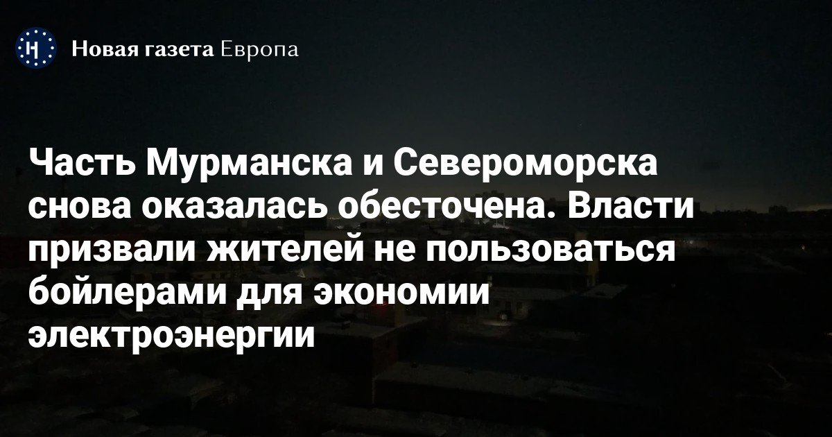 Мэр Мурманска Иван Лебедев рассказал, что для перераспределения электроэенргии на улицах будут отключать освещение. Власти отменили занятия в школах, а общественный транспорт перевели на особый режим работы.